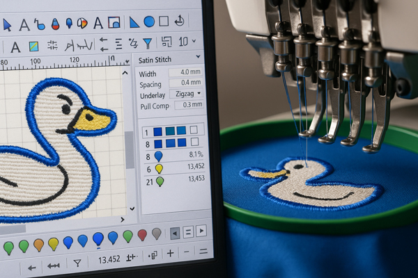 Das Punchen bildet die Grundlage jeder hochwertigen Maschinenstickerei. Dabei wird ein Motiv so digitalisiert, dass die Stickmaschine exakt weiß, wann sie welchen Stich setzen soll. Eine gute Punchdatei entscheidet darüber, ob ein Stickmotiv sauber, flach, detailreich und langlebig wird.