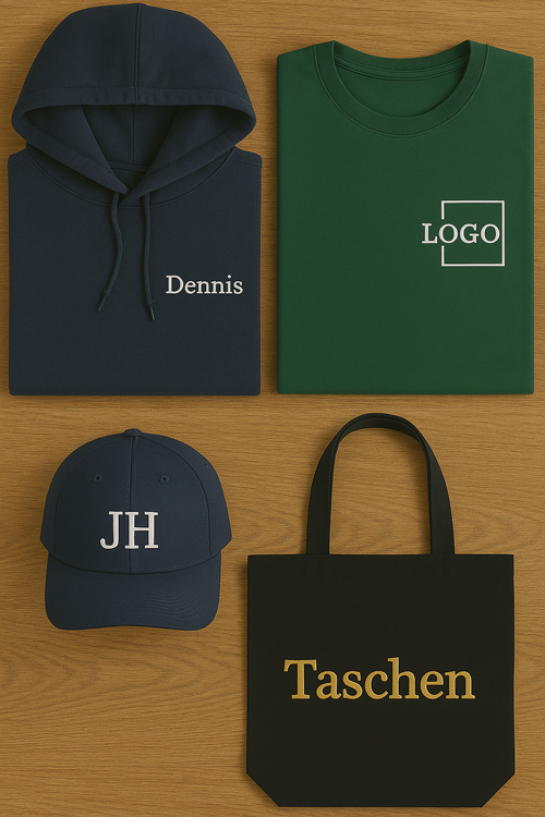 Namen, Logos und Monogramme auf Hoodies, T-Shirts, Caps oder Taschen – jedes Produkt wird zum Einzelstück. Besonders bei Geschenkartikeln, Vereinskleidung und kleiner Markenmode ist das ein echter Mehrwert.